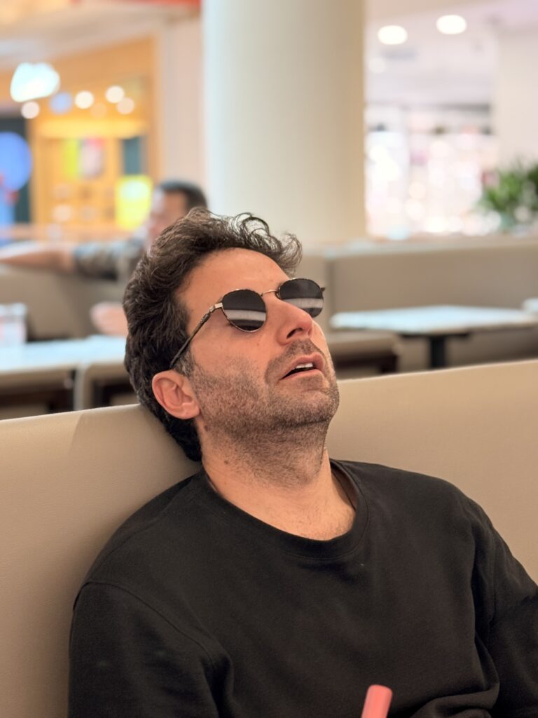Selim asleep inside the coffee shop, inside the towers