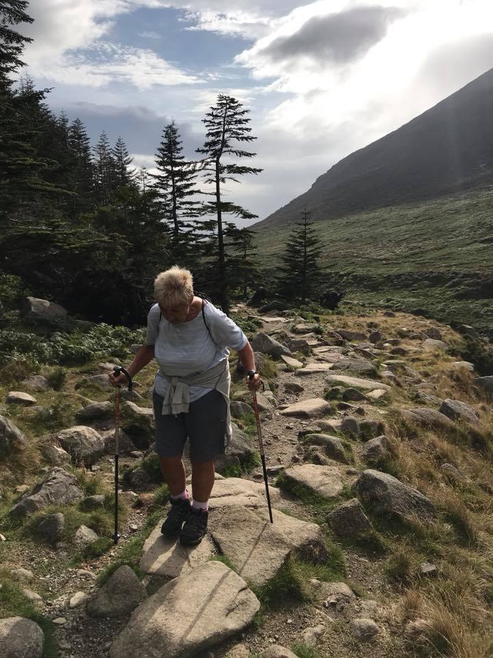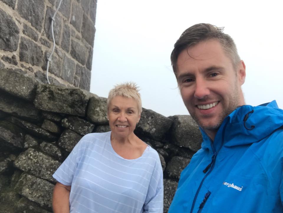 We spent 20 minutes at the summit. Trying to enjoy the achievement. A proud moment for everyone no doubt, but lifting the walking pole for the photo was almost a task too far for my mum by this stage. You can see from the photo how knackered my mum is. Stupidly, I thought the worst of it was over though.