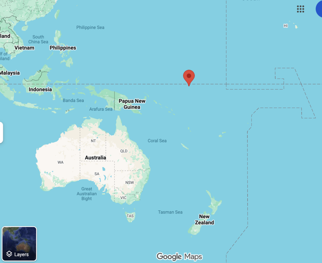 In the middle of the Pacific Ocean. Half way between Australia and Hawaii. And Tuvalu another couple of hundred miles east. But you can’t fly between them. Obviously. That would be far too easy and reasonably priced. Instead we have to bump around between those 2, and Australia, and Fiji. First world problems indeed!
