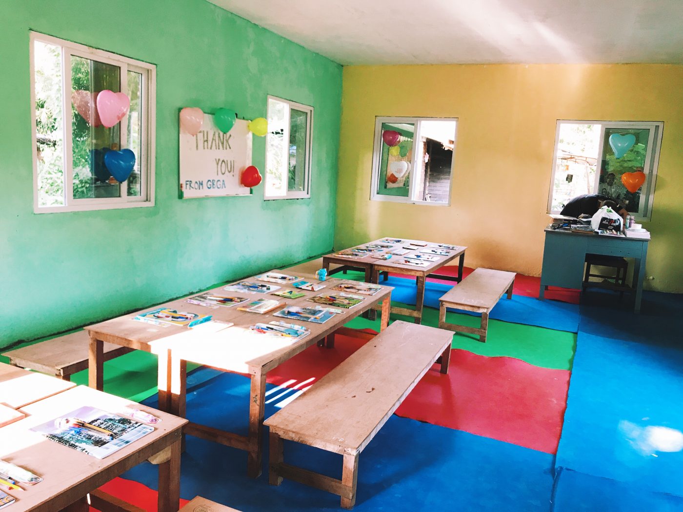 So the community did their best, 22 kids, 16 of whom were orphans (many parents lost to the hurricane), and they constructed a bamboo shack, banana leaf as roofing and a weaved floor. Naturally the rainy season in South East Asia was unforgiving, the kids napped in there, soaking wet, their pens and books got drenched every time the rain fell. When we visited the amazing teachers wouldn’t allow me to walk along the back side of the classroom as the floor had subsided. The community had done amazingly well to create a kindergarten at all, but they deserved a proper school, both the teachers and kids alike. So, thanks to Carl’s research and contacts, the GiveBack GiveAway was eager to step in and fill the void!
