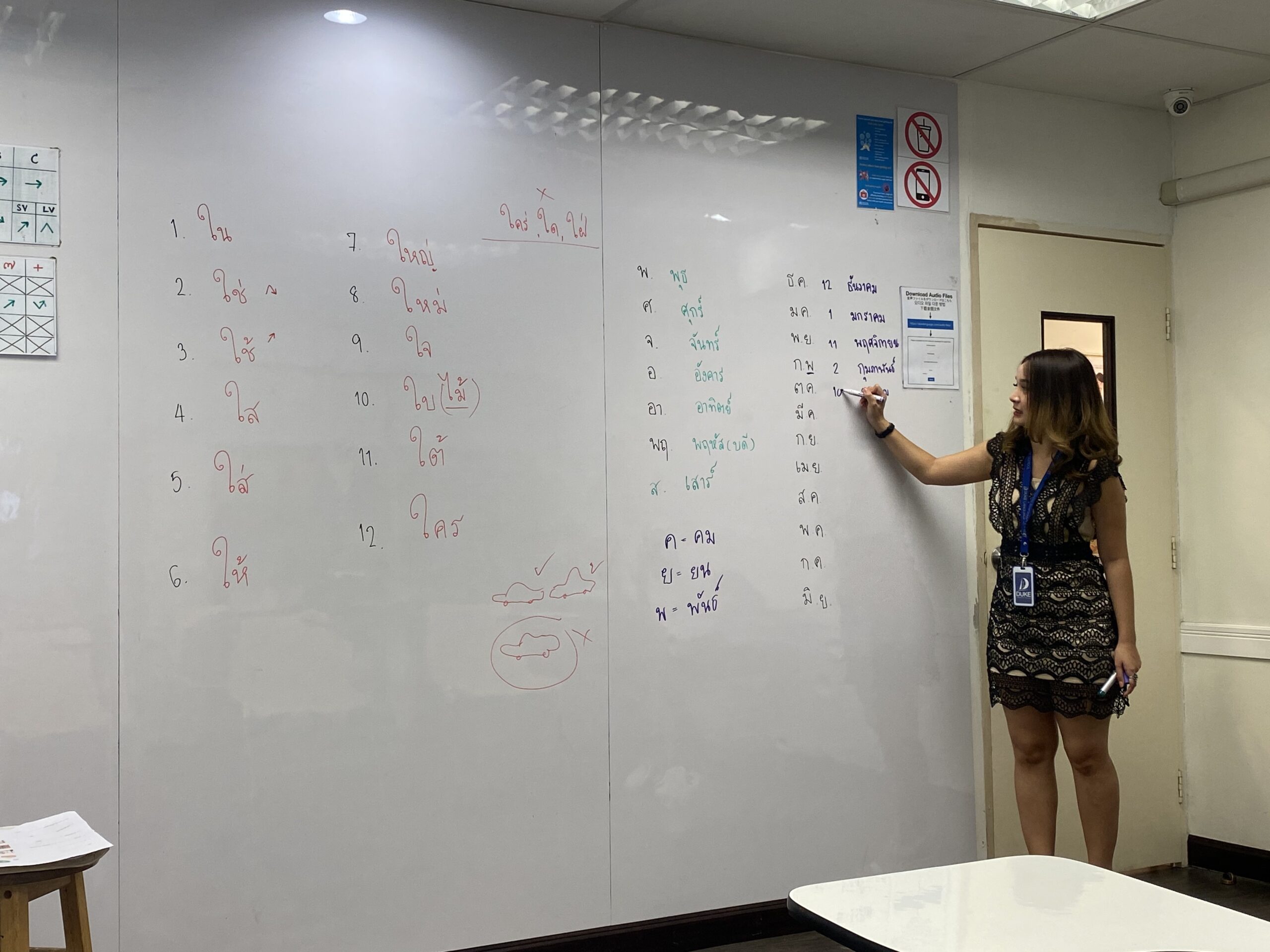 I walked in and met my teacher Kru Tanya (Kru being the Thai word for Teacher). Level 4, 5 and 6 in Duke are called ‘Explore 1, Explore 2 and Explore 3’. It’s during these 3 modules that you learn the Thai alphabet, and ultimately, how to read and write Thai. A daunting prospect.