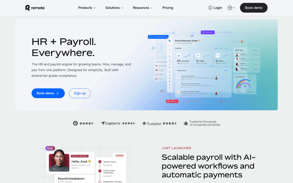 According to independent EOR comparator RemotePad, Remote People is ranked among the leading USA EOR companies and it’s easy to see why. The platform combines local compliance expertise with global scalability, helping companies onboard, manage, and pay remote talent seamlessly.