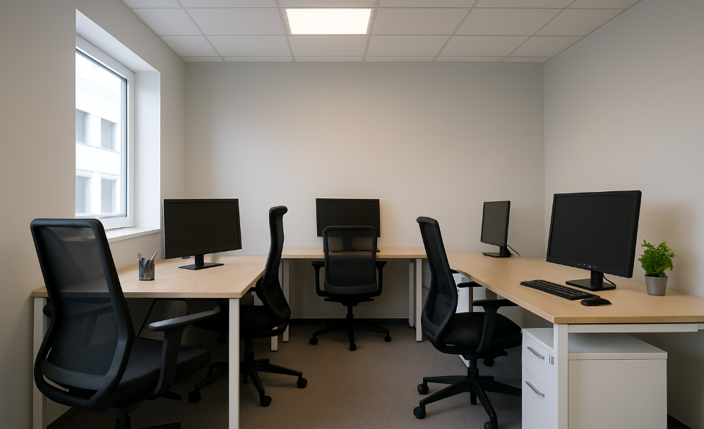 - Up-to-date office facilities like lighting, flooring, and a cabled connection